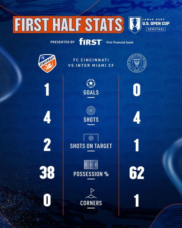 2023美国公开杯半决赛,梅西领衔的迈阿密国际客场淘汰辛辛那提,常规时间迈阿密从0比2落后到2比2追平,加时赛3比2反超又被3比3追平,最终迈阿密点球5比4晋级决赛!这是迈阿密在梅西加盟短短一个多月内,队史第二次打进决赛!稍晚进行的另一场半决赛中,休斯敦迪纳摩常规时间1比1战平皇家盐湖城,加时赛3比1取胜,决赛将在当地时间9月27日进行,由迈阿密国际对阵休斯顿迪纳摩,梅西将率队冲击第二冠!