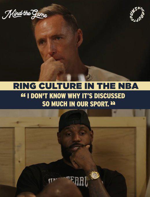 现在这两个队,他们的超巨都在说,自己拿不拿总决赛MVP不重要,个人荣誉也不重要,只要球队能夺冠就够了,因为两队都没拿过总冠军。但是詹姆斯这次给出了一个截然不同的观点,他的态度很明确,NBA当中这个所谓的“戒指文化”这么流行没道理,大家应该更欣赏的是每个球员取得的个人成就。